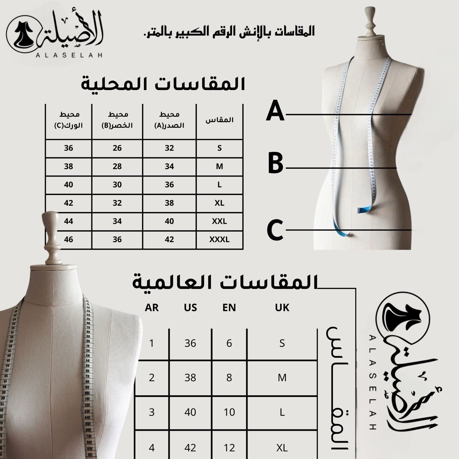 جدول المقاسات